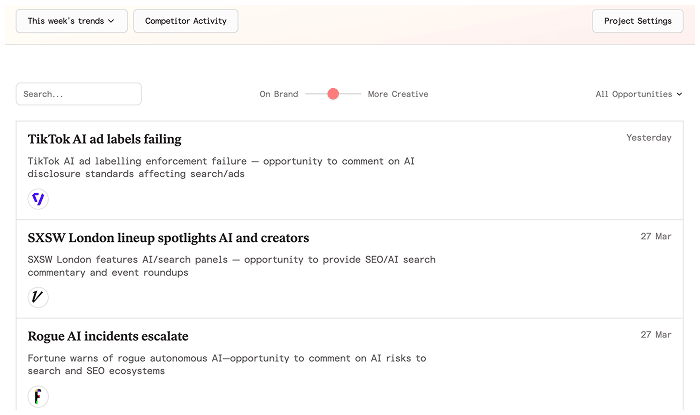 - Move faster with data-backed angles: Spot opportunities early and get suggested angles to create pitch-ready stories quickly.