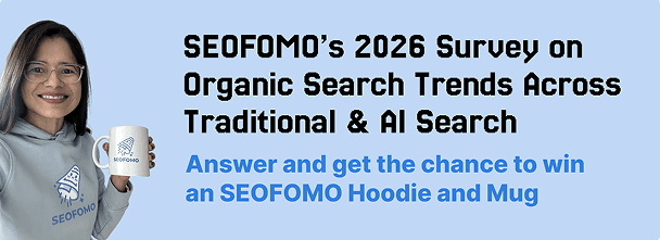 Help understand how organic search (both AI and traditional) evolved in 2025, and identify the top trends for 2026 β from key challenges to shifts in strategies, goals, tools, and expectations β by taking the SEOFOMO 15 questions survey below for a chance to win an SEOFOMO hoodie and travel mug.